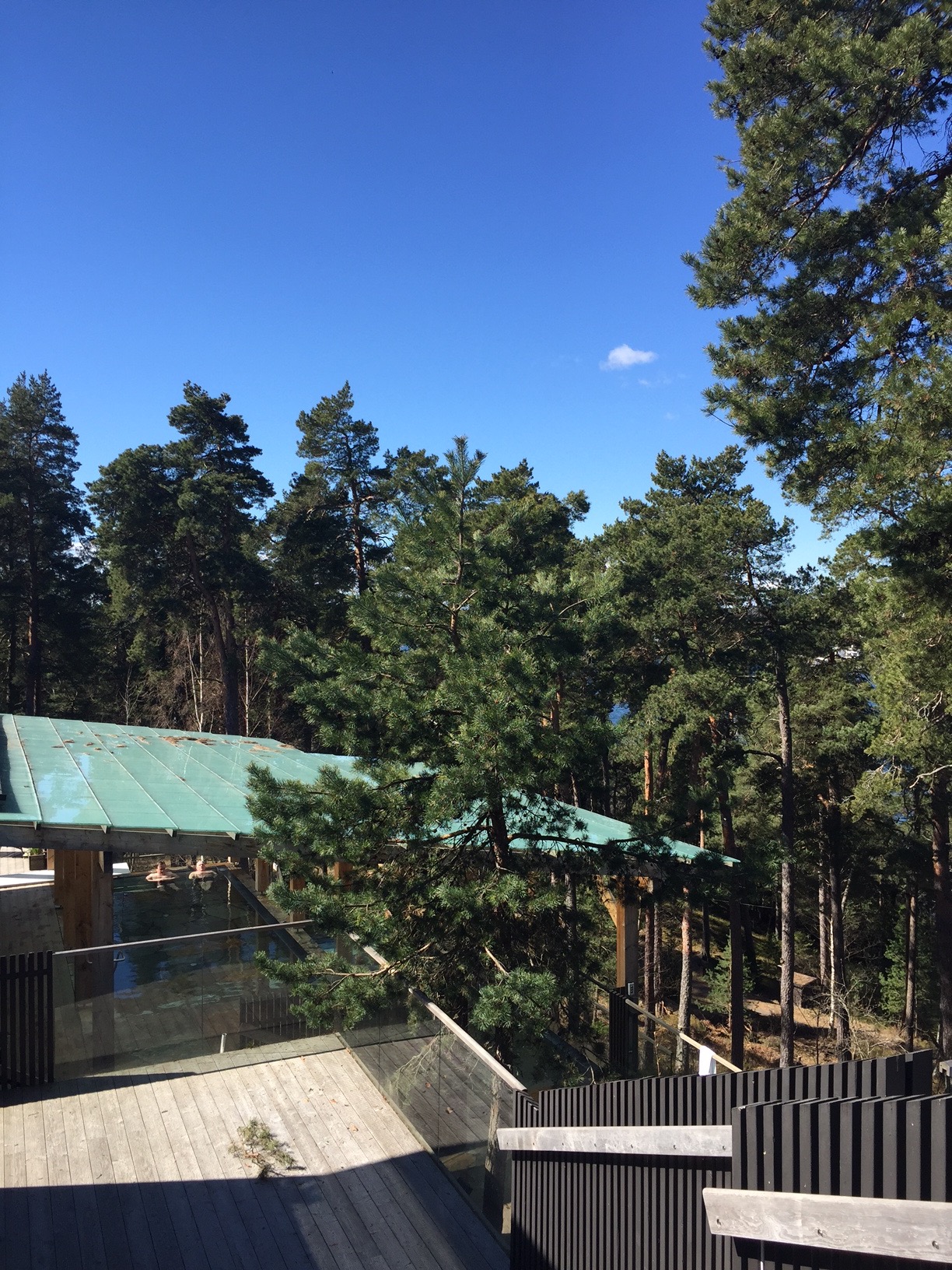 Ute i det stora badet fortsätter lugnet med varma källor under bar himmel, bastu och kallpool. Vi tog mod till oss, gick från bastuns tallutsikt rakt ut i det iskalla vattnet – en upplevelse som visade sig vara mer uppiggande än plågsam.